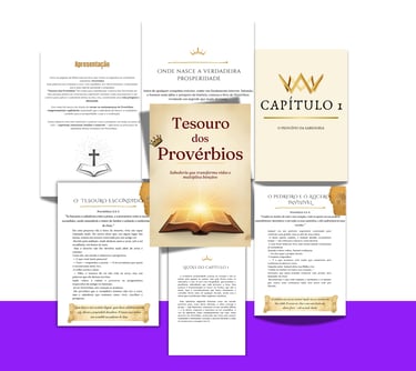 O Tesouro dos Provérbios é um material digital criado para facilitar a compreensão do livro de Provérbios, unindo explicações claras, histórias e parábolas que revelam seus ensinamentos de forma simples e profunda. Contendo ensinamentos sobre como aplicar a sabedoria para prosperar de forma equilibrada e consciente na vida pessoal, financeira e espiritual.